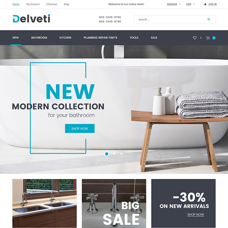 Delveti is an up-to-date theme that is carefully-crafted to present bathroom equipment and whatever related to it. Enhance your online-store using tons of fully-functional options that are already waiting for you in the package.